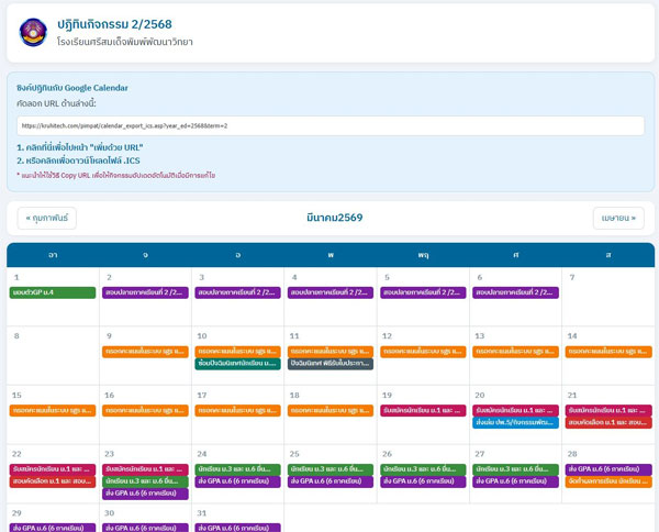 ระบบปฏิทินกิจกรรมโรงเรียนออนไลน์