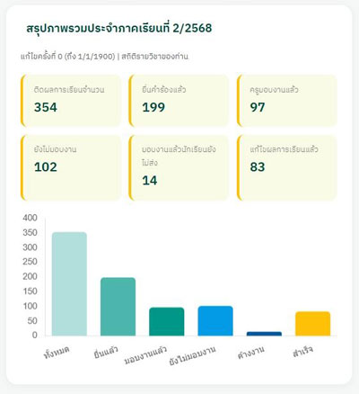 ระบบรายงานของเราช่วยให้ผู้บริหารและครูติดตามพฤติกรรม การเข้าเรียน และข้อมูลสำคัญต่าง ๆ ได้แบบเรียลไทม์