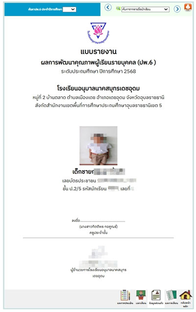 ระบบรายงานผลการพัฒนาคุณภาพผู้เรียน ปพ.6 เพื่อลดงานเอกสาร และลดความซ้ำซ้อน ครูไม่ต้องกรอกข้อมูลหลายรอบ ดึงข้อมูลอัตโนมัติ จากระบบงานวิชาการ ปพ.5 และระบบดูแลช่วยเหลือ ทำให้ข้อมูลถูกต้องและทันสมัยเป็นปัจจุบัน ประหยัดเวลา ในการสรุปผลและจัดทำรายงานรายชั้น/รายห้อง ลดข้อผิดพลาด จากการคีย์ข้อมูลด้วยมือ ค้นหาตรวจสอบง่าย สามารถดูความก้าวหน้าของผู้เรียนเป็นรายบุคคลได้ทันที สนับสนุนการตัดสินใจ ของครูและผู้บริหารด้วยข้อมูลที่เป็นระบบ