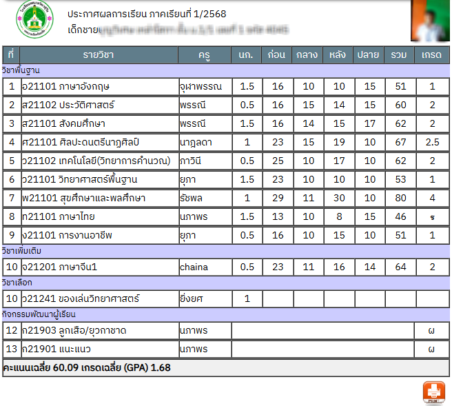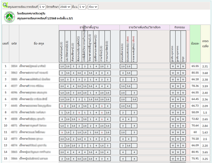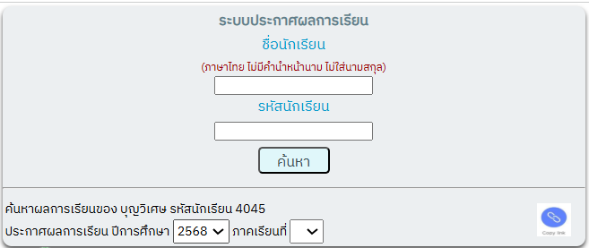 ประกาศผลการเรียนออนไลน์ ระบบประกาศผลการเรียนออนไลน์ เมนูนี้จะปรากฏขึ้นเมื่อตรงกับช่วงเวลาที่ admin ได้กำหนดไว้ นักเรียนสามารถเข้าดูผลการเรียนของตัวเองได้โดยตรงผ่านระบบประกาศผล หรือดูของคนอื่นด้วยการกรอกชื่อและรหัสนักเรียนของเพือน ก็จะปรากฏรายละเอียดผลการเรียนทุกรายวิชา คะแนน GPA และอันดับที่ของห้อง นอกจากนั้นครูประจำชั้นสามารถ print ประกาศสรุปผลการเรียน ระดับชั้นเรียนได้อย่างง่ายดาย