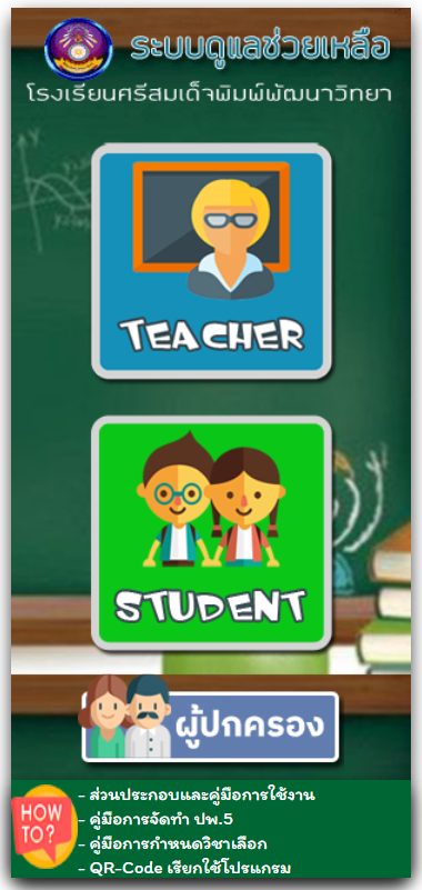 เมนูเข้าสู่ระบบแจ้งเตือนผู้ปกครองหรือ scan qr-code เพื่อเข้าสู่ระบบ