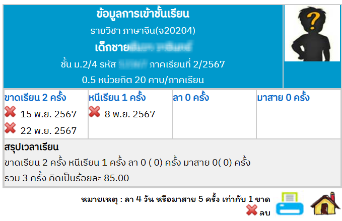การแจ้งเตือนผู้ปกครองกรณีขาดเรียน