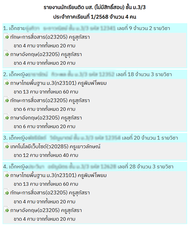 รายงานนักเรียนไม่มีสิทธิ์สอบ