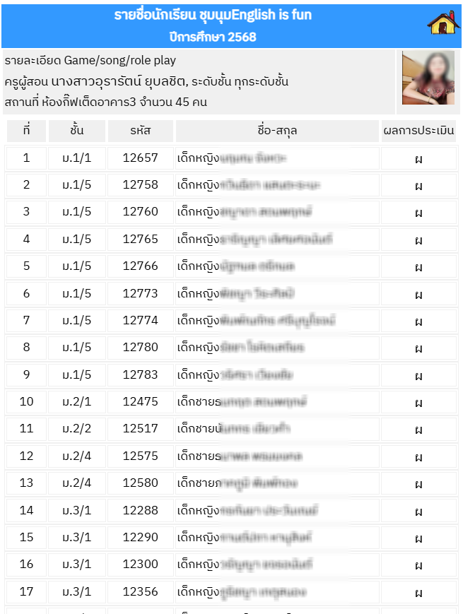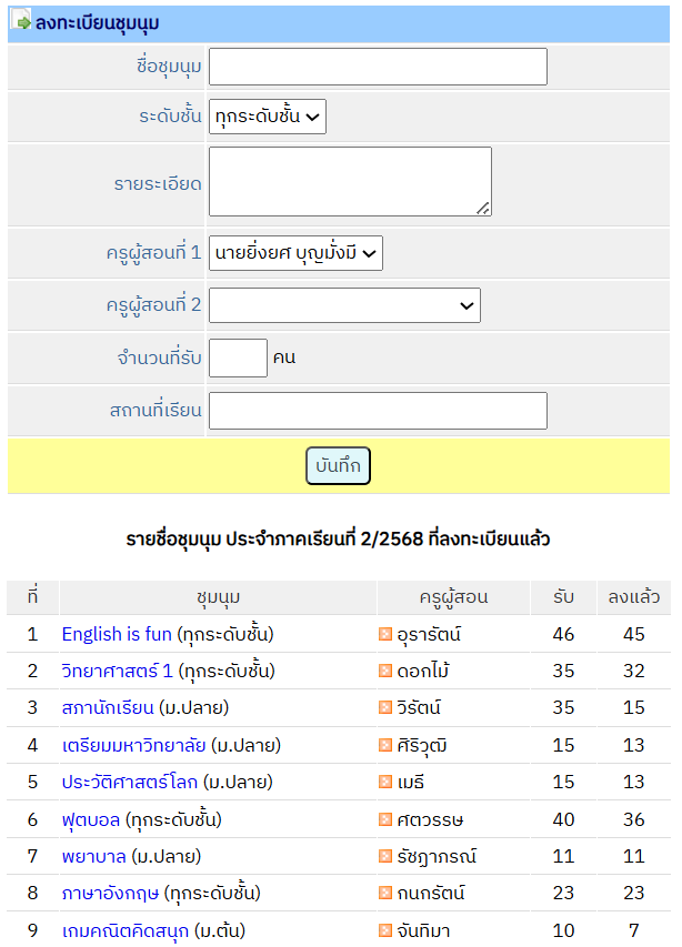 ลงทะเบียนชุมนุมของครูประจำวิชา